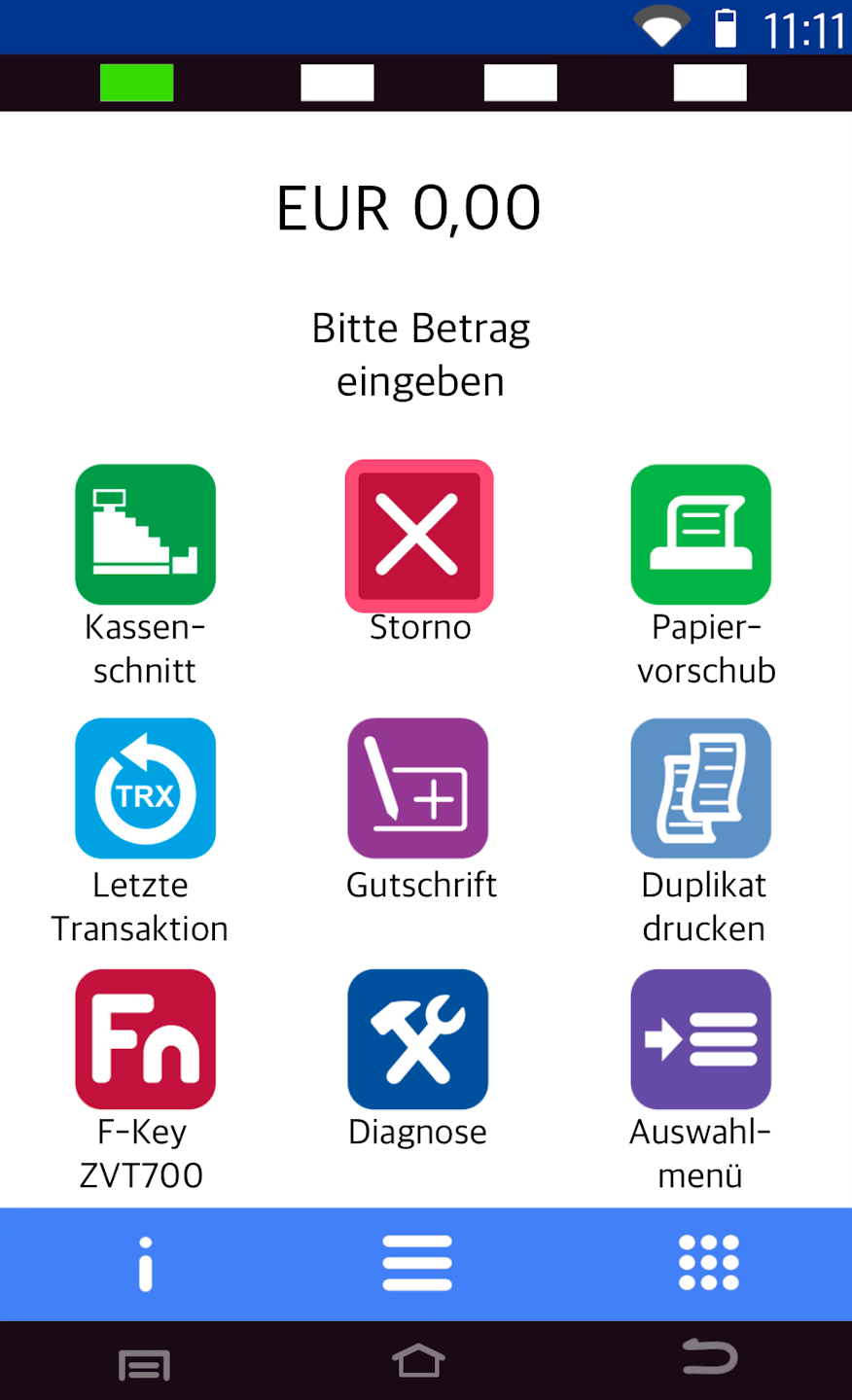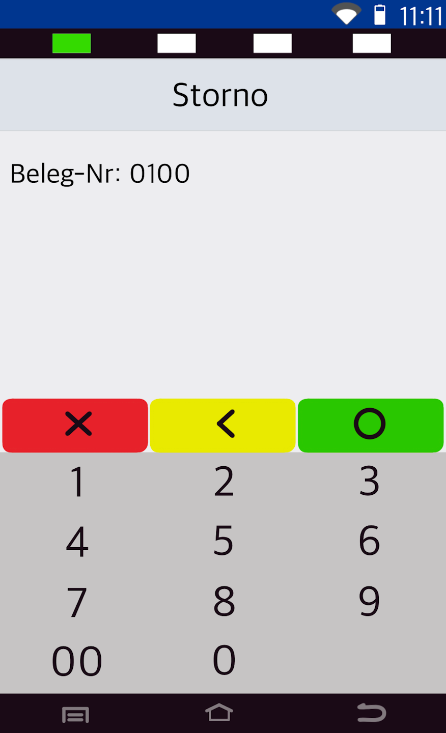 Bitte geben Sie die Belegnummer von Ihrem Zahlungsbeleg ein und bestätigen Sie die Eingabe mit der grünen OK-Taste auf dem Display.