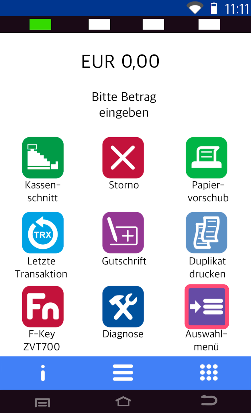 Bitte geben Sie den Zahlbetrag ein und bestätigen Sie die Eingabe mit der grünen OK-Taste.