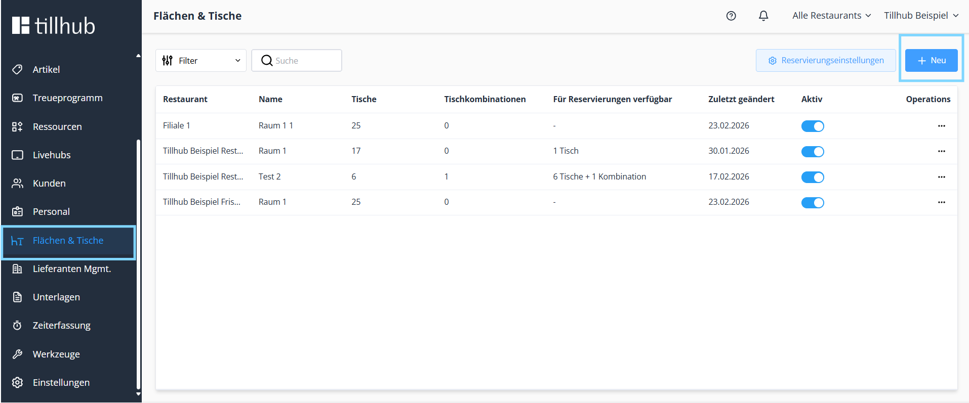 Konfiguration der Räume und Tische im Dashboard - Neue Version