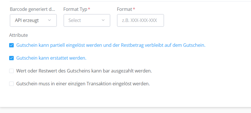 Im Textfeld "Barcode generiert durch" können Sie entscheiden, auf welche Weise die Codes Ihrer Gutscheine generiert werden sollen, wenn Sie in Ihrer Kasse einen Gutschein erstellen.