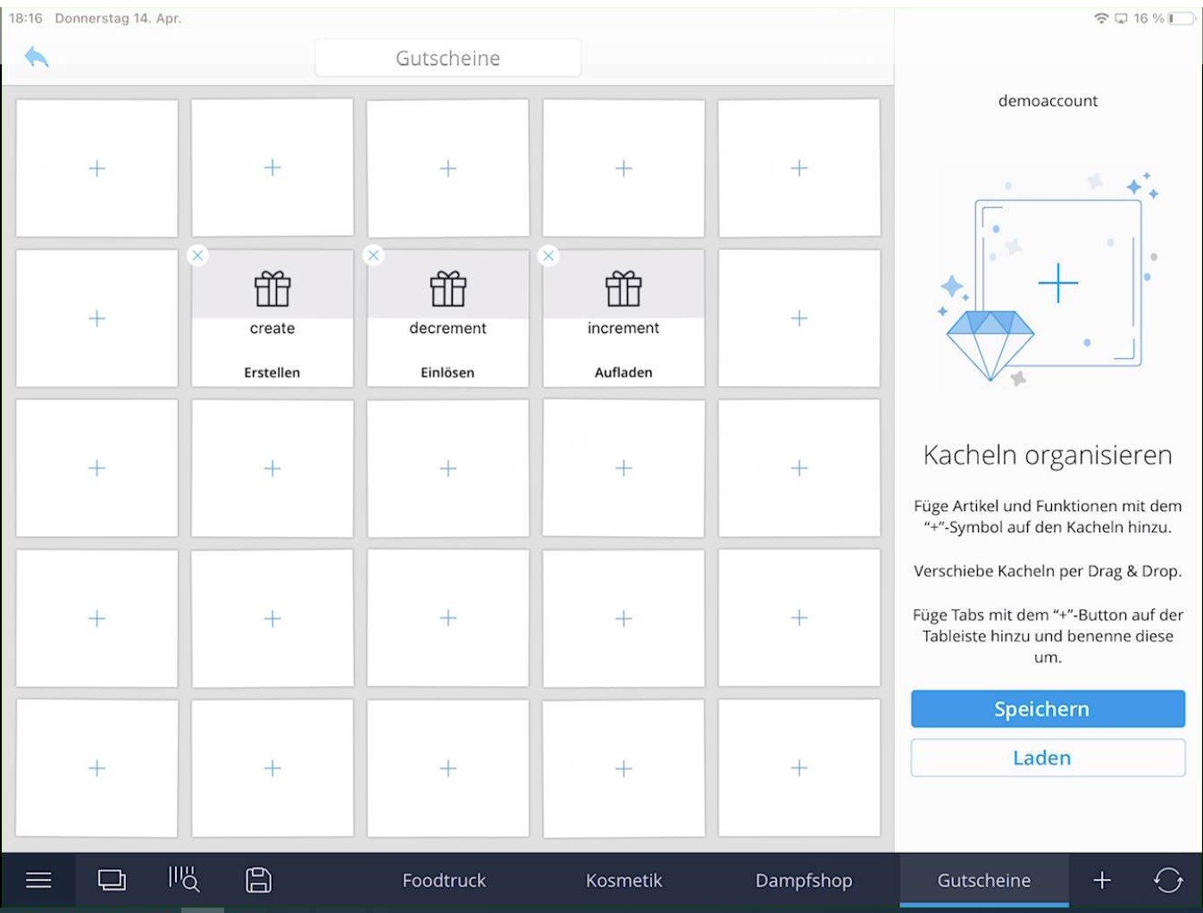 - Gutschein-Aktionen in der App auf Kacheln legen