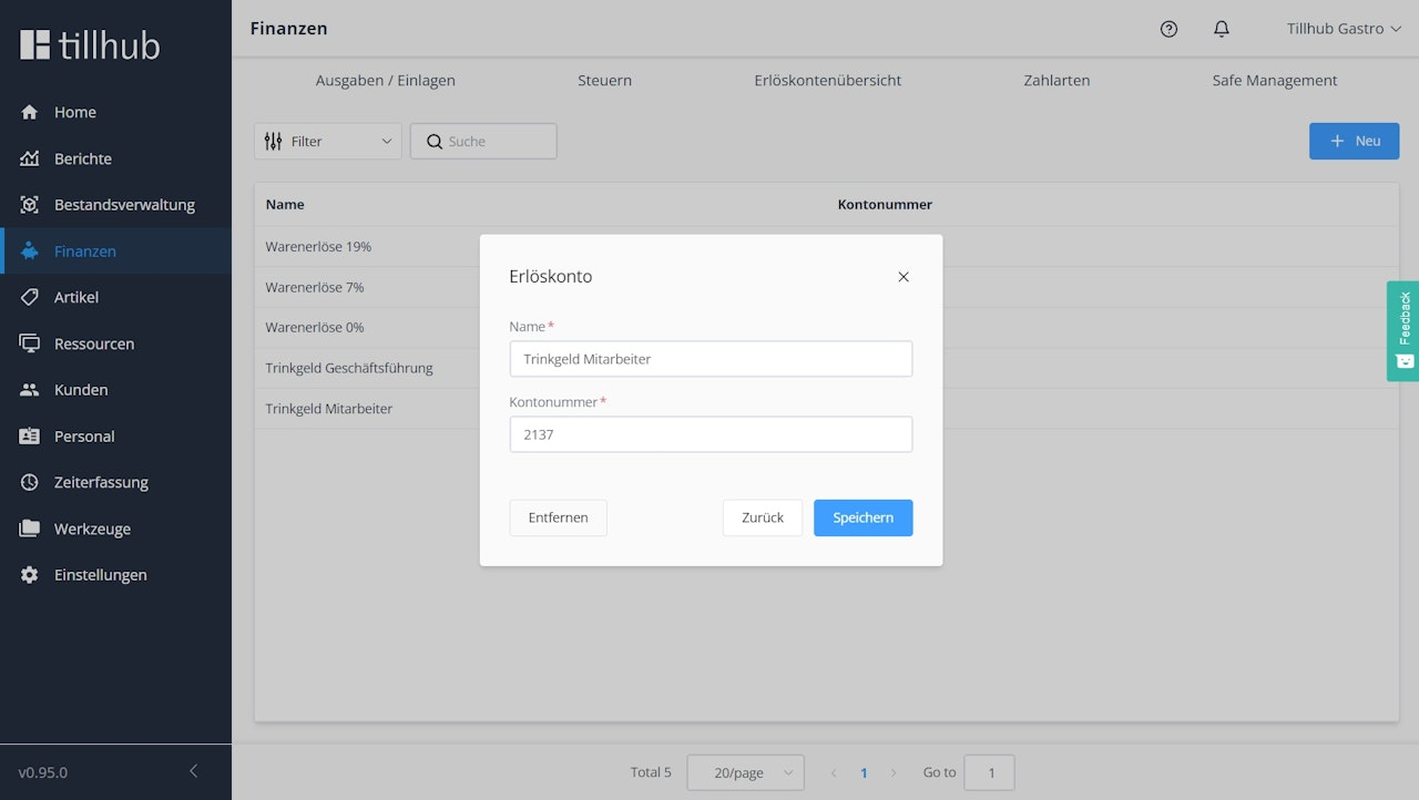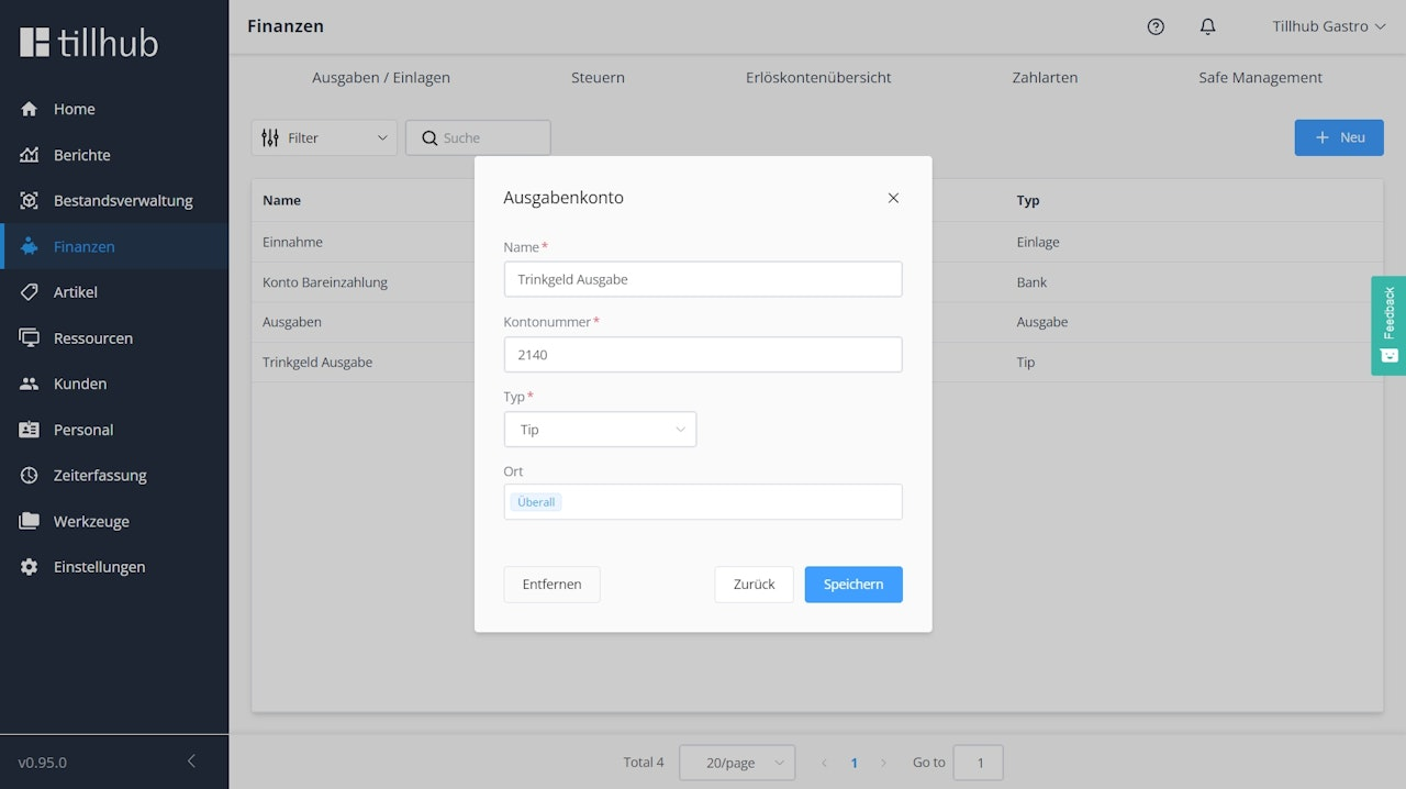 Trinkgeld Ausgabekonto Anlegen
