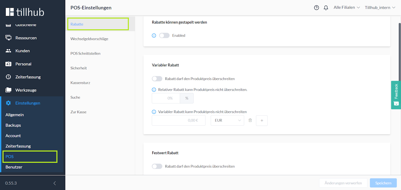 Hier können Sie den manuellen Kassensturz aktivieren bzw. deaktivieren.