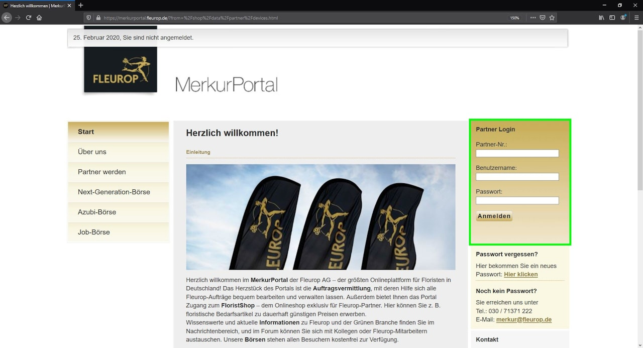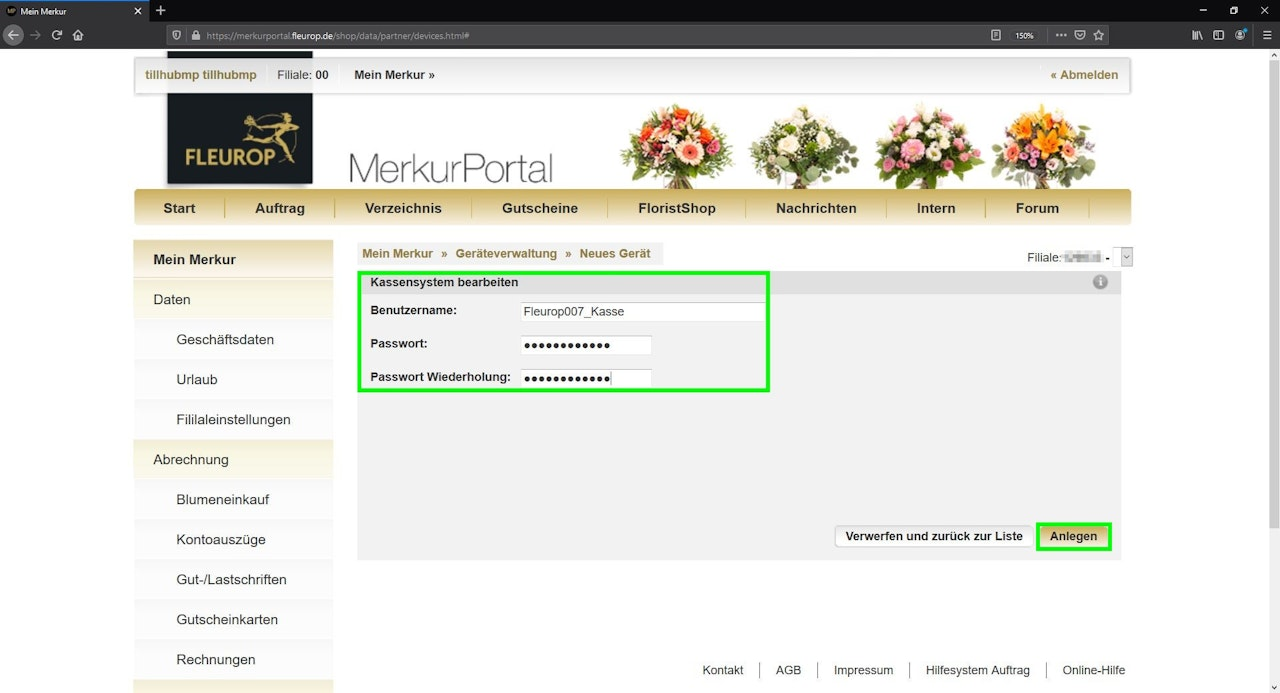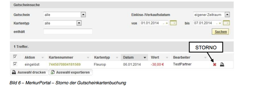 Sollten Sie also einen Verkauf oder eine Einlösung eine Fleurop-Karte stornieren wollen, müssen Sie sich im Merkur-Portal anmelden und einen Storno vornehmen.