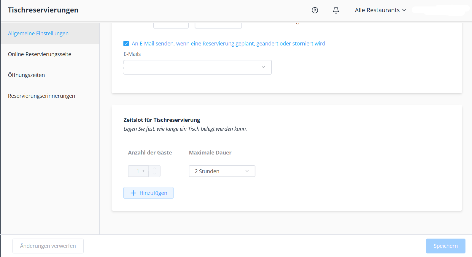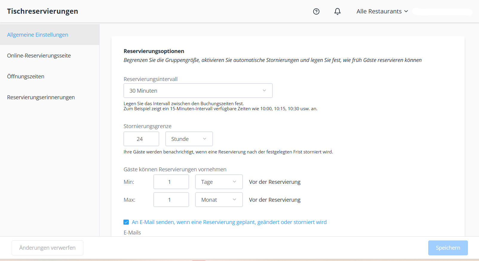 - Allgemeine Einstellungen für Reservierungen