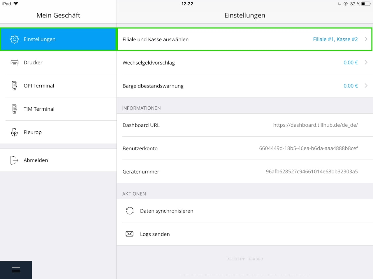 - Zwischen verschiedenen Filialen & Kassen wechseln