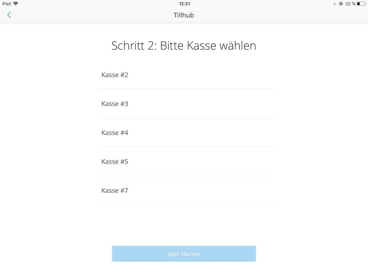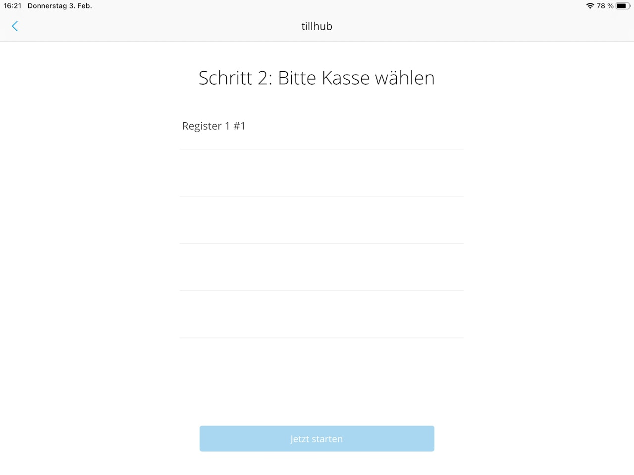 Schritt 2: Je nachdem, wie viele Kassen-Lizenzen Sie erworben haben, steht die entsprechende Anzahl hier zur Auswahl. Wählen Sie die jeweilige Lizenz auswählen und tippen Sie anschließend auf "Jetzt starten".