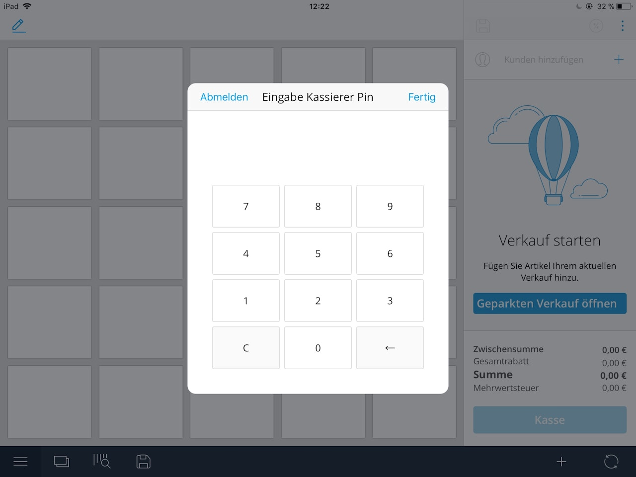 Zuletzt müssen Sie sich nur noch mit einer gültigen Mitarbeiter-PIN anmelden.