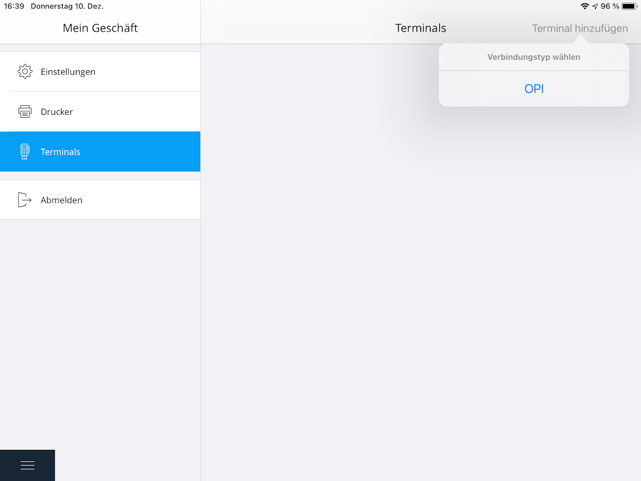 Hier wählen Sie "Terminal hinzufügen" und tippen auf die jeweilige Schnittstelle, die für das Terminal benötigt wird.