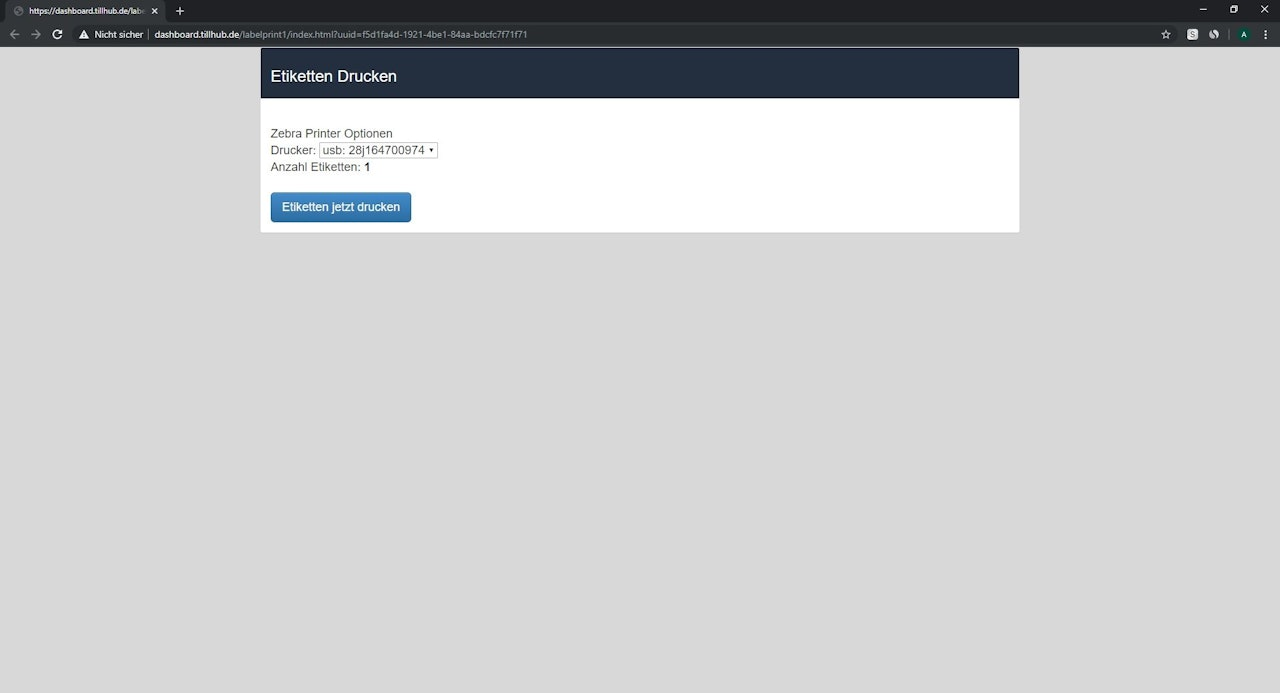 Im Browser öffnet sich nun ein ne.ues Fenster, in dem wir "Etiketten jetzt drucken" anklicken.