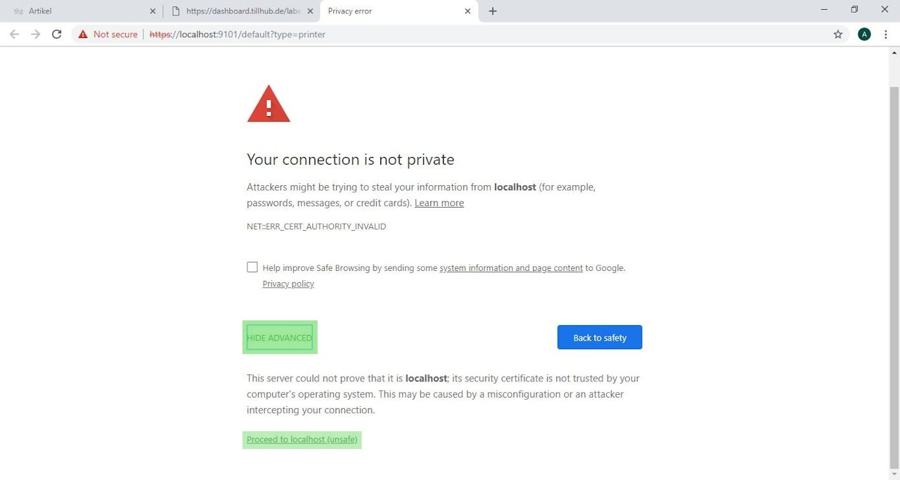 - Das nun geöffnete Fenster sagt Ihnen, dass die Verbindung nicht sicher sei. Keine Sorge, es wird nichts passieren!