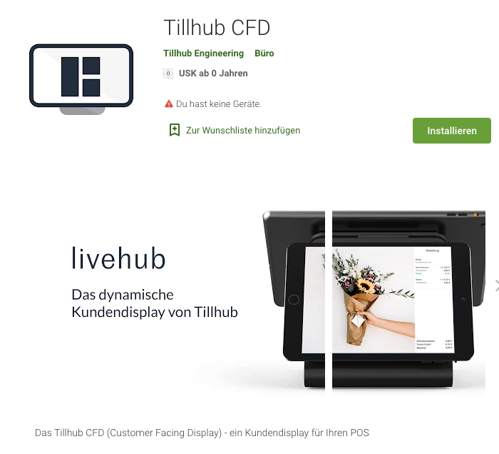 Suchen Sie dort nach der Livehub-App und achten Sie darauf, dass es sich um die LifeHub-App von Tillhub handelt. Laden Sie die App herunter und öffnen Sie sie anschließend.
