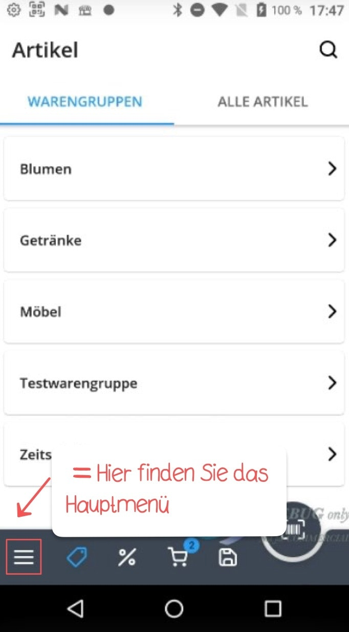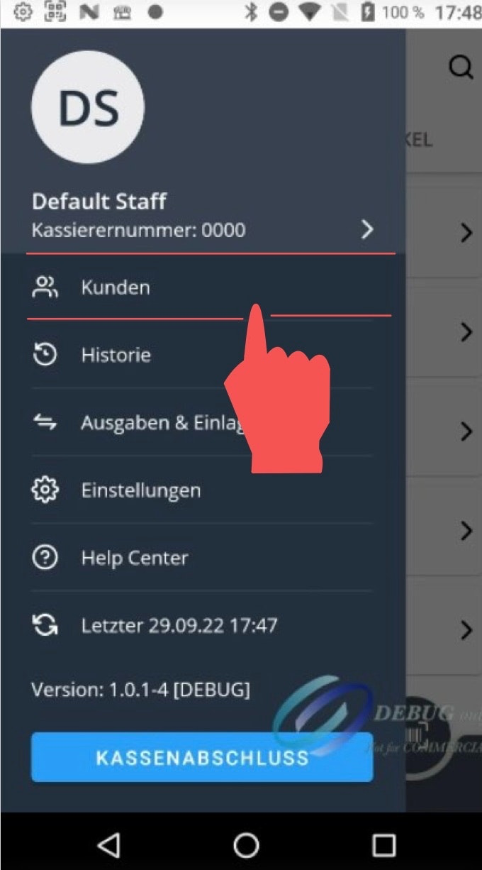 Um neue Kunden-Accounts anzulegen, tippen Sie unten links auf das Hauptmenü-Symbol.