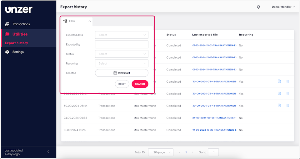 - Filtering your export history