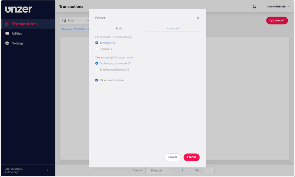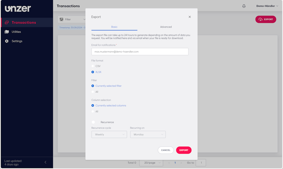 Exporting your transaction data