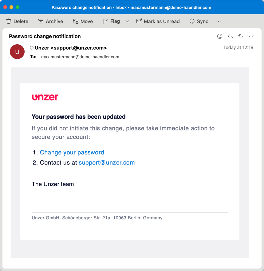 After successfully setting up the password for your user account, you will also receive an email confirmation.