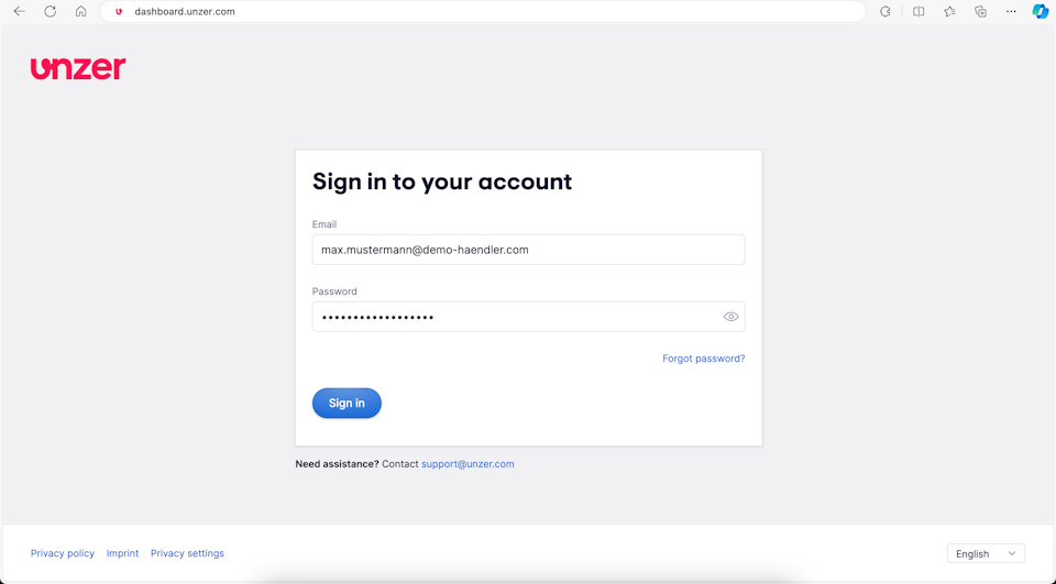 - Go to https://dashboard.unzer.com and enter your email and password.