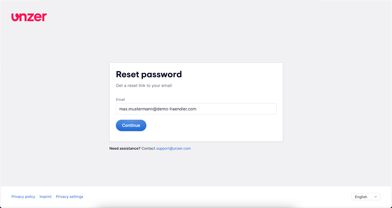 Then, on the "Reset password" screen, enter your email and select Continue.