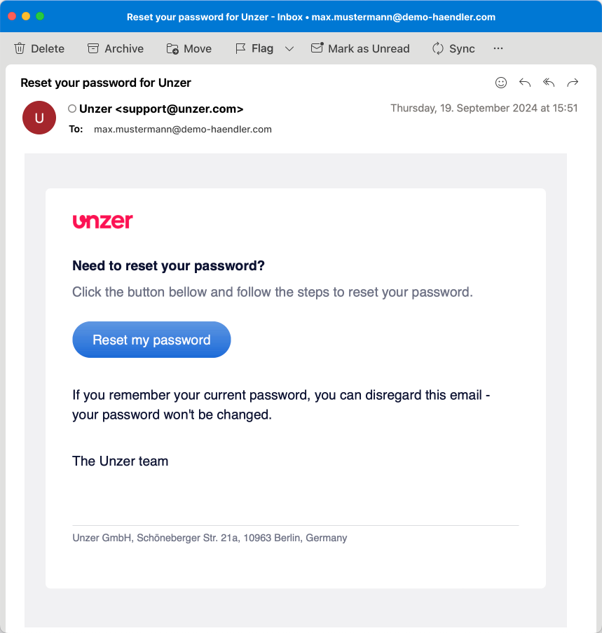 You will receive an email with a link for resetting your password. Click on Reset my password.