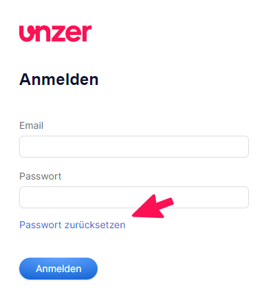 When you click on Passwort zurücksetzen (Reset your password), a window opens where you can enter your email. Provided this email address is registered for your account, you will receive a system notification that will enable you to log back in to Unzer Insights.