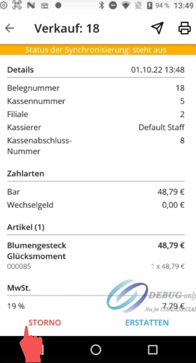 Select the corresponding sale and tap the “Cancel” button at the bottom left.