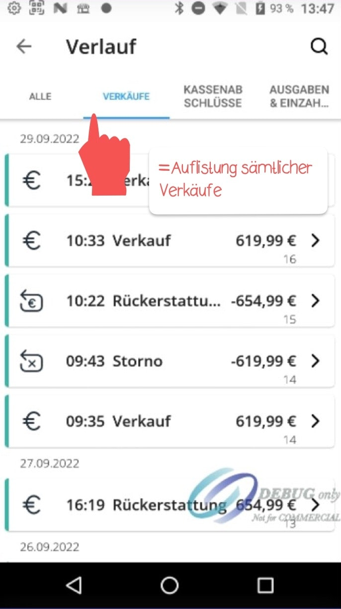 Tap the “Sales” tab to view a list of all your sales.