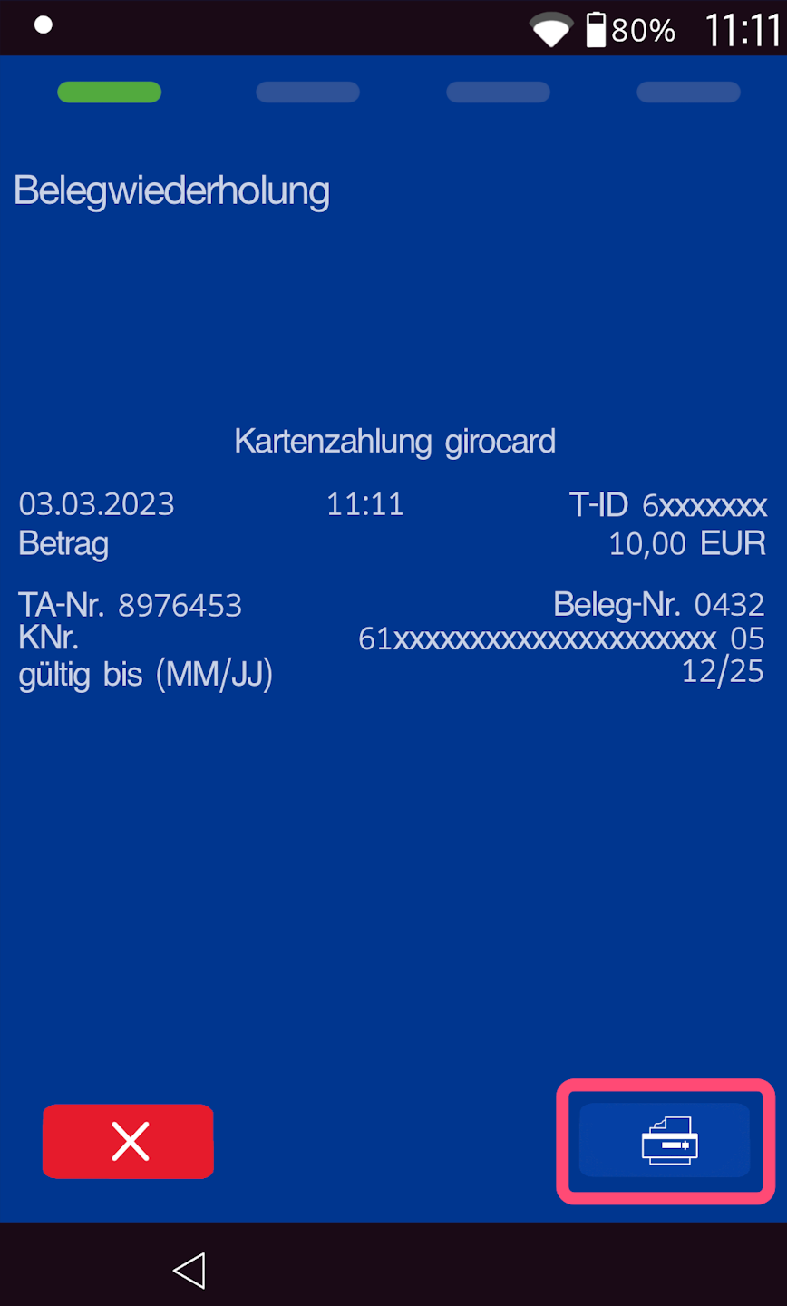 Print the receipt copy by tapping the printer icon at the bottom right.