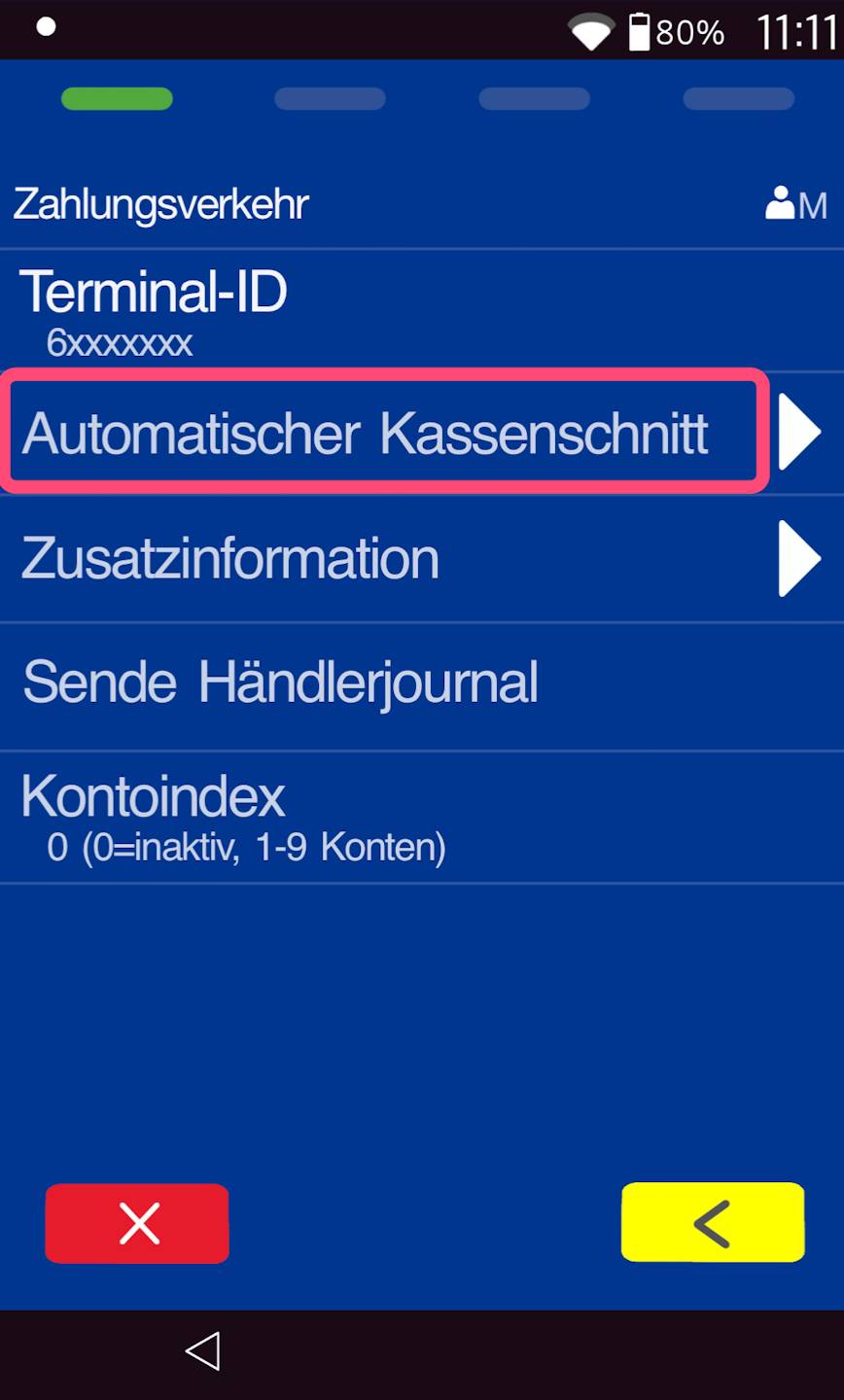 The automatic cash cut-off / end-of-day closing has now been set and will be carried out at the desired time with an existing Internet connection.