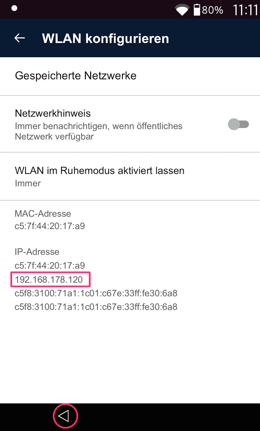 Your currently assigned IP address (via DHCP) will now be shown.