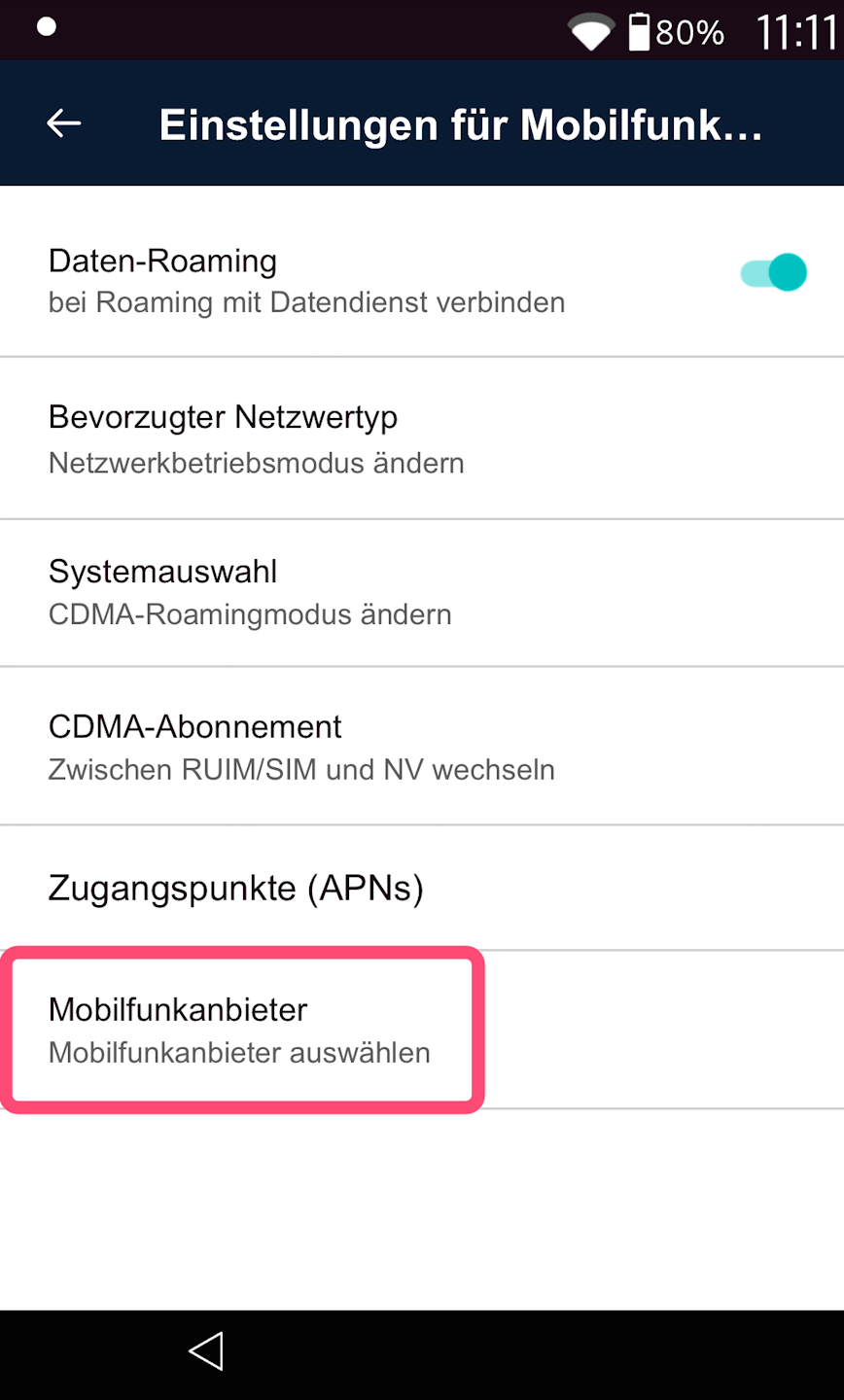 You can now view which mobile network you are currently using at any time by briefly tapping the SIM card icon (Fig. 2) in the Android settings.
