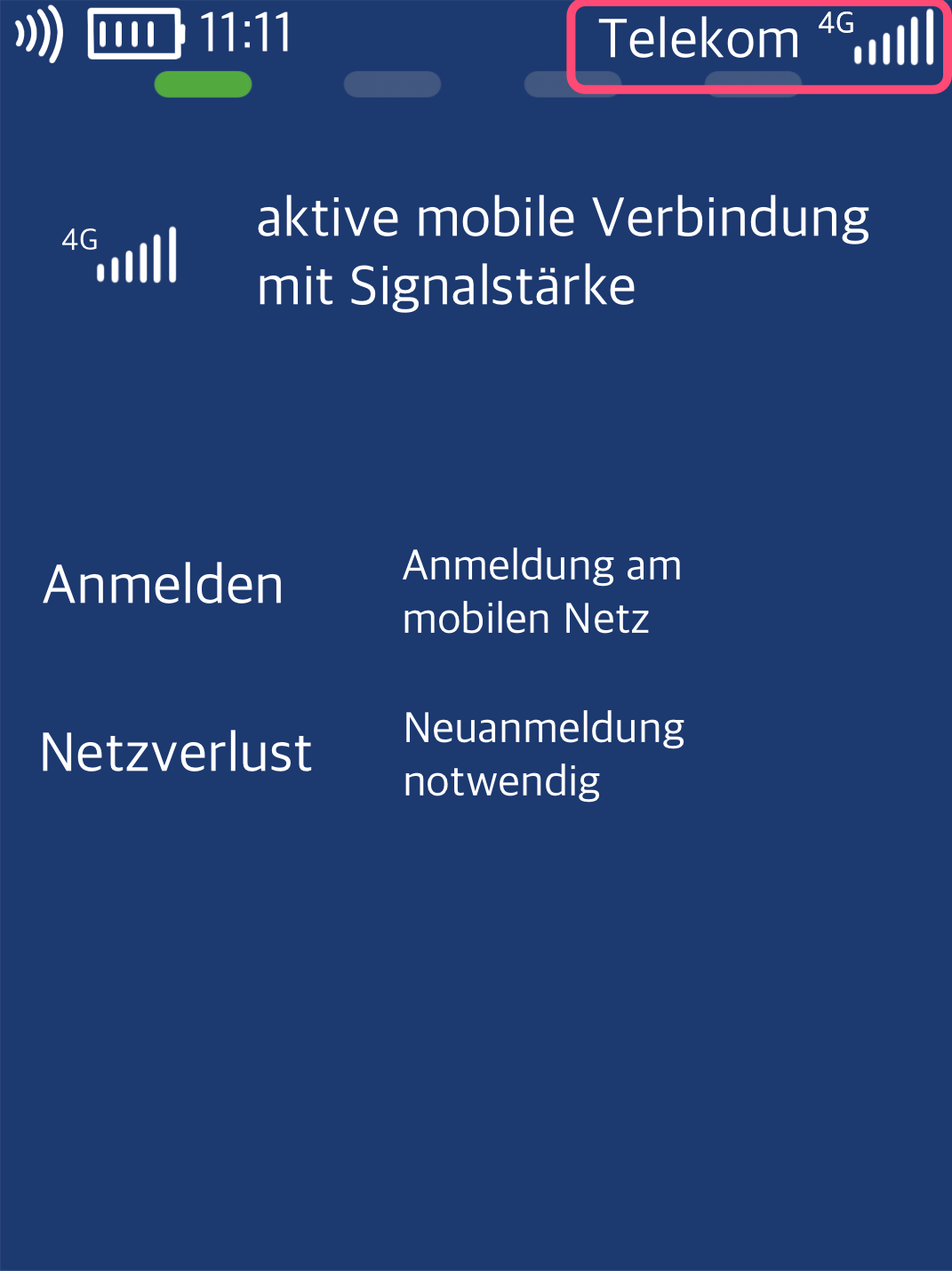 In the upper area of the display, you can see whether your SIM card has logged into the mobile Telekom network.