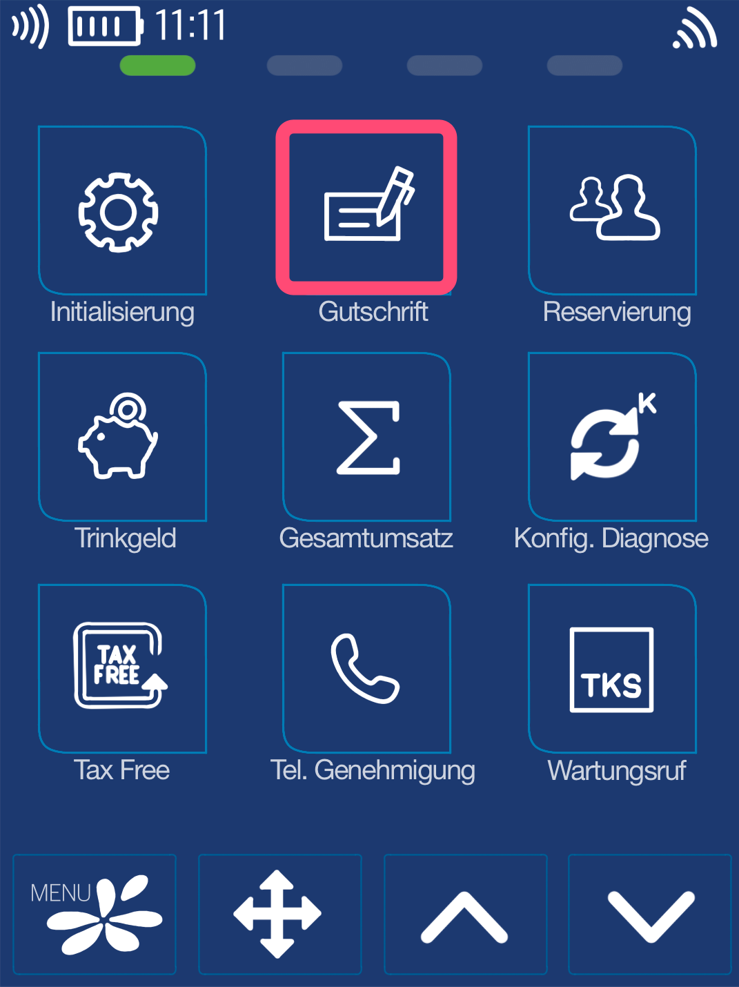 If you do not see the refund button on the main display, please use the Favorites button as shown in Fig. 2. More favorites will be displayed, among which you can then select the refund button.