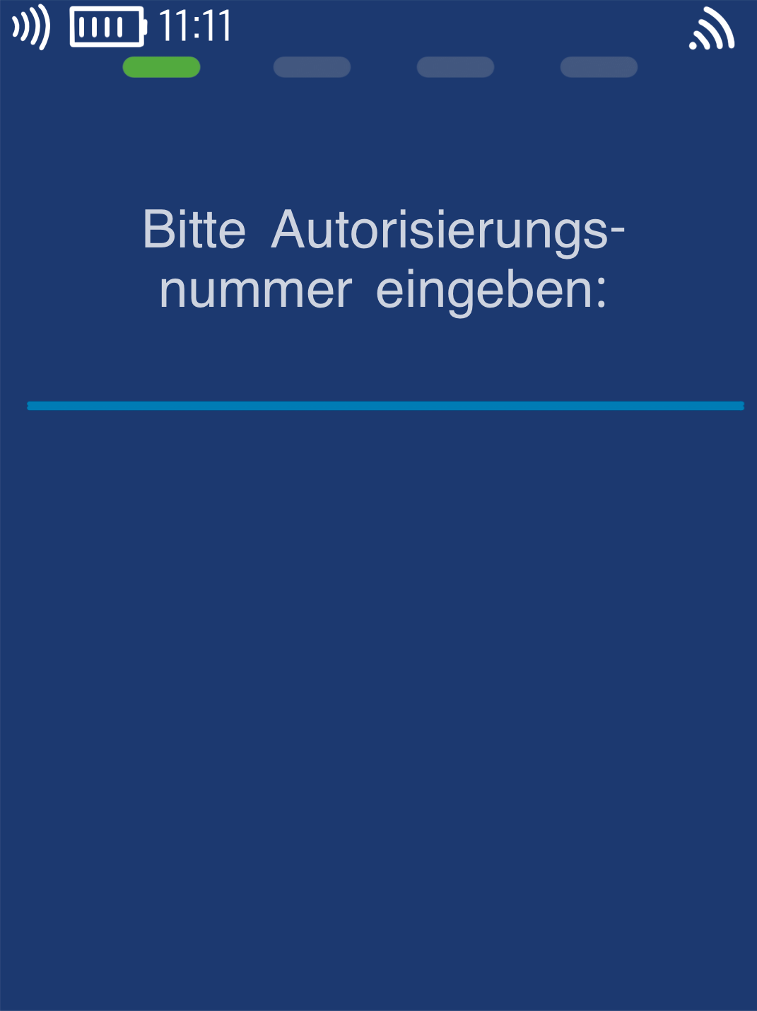This is where the received authorization code is entered. Please confirm your entry with the green OK key.