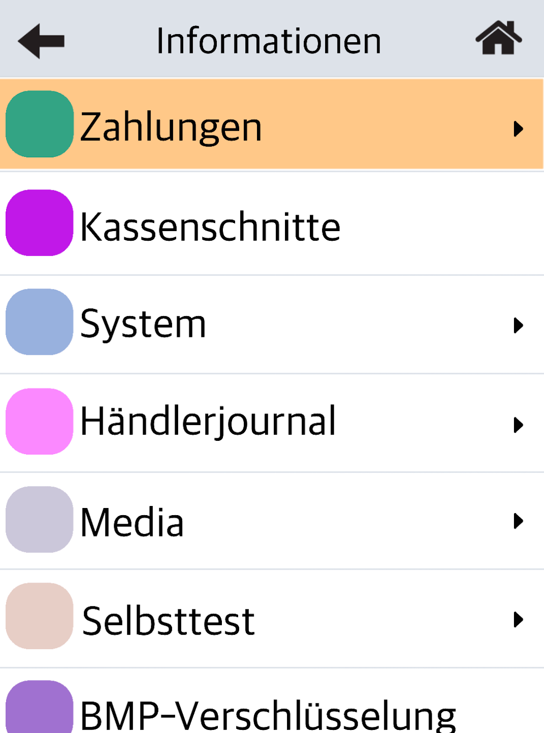 Please select the menu item Zahlung.