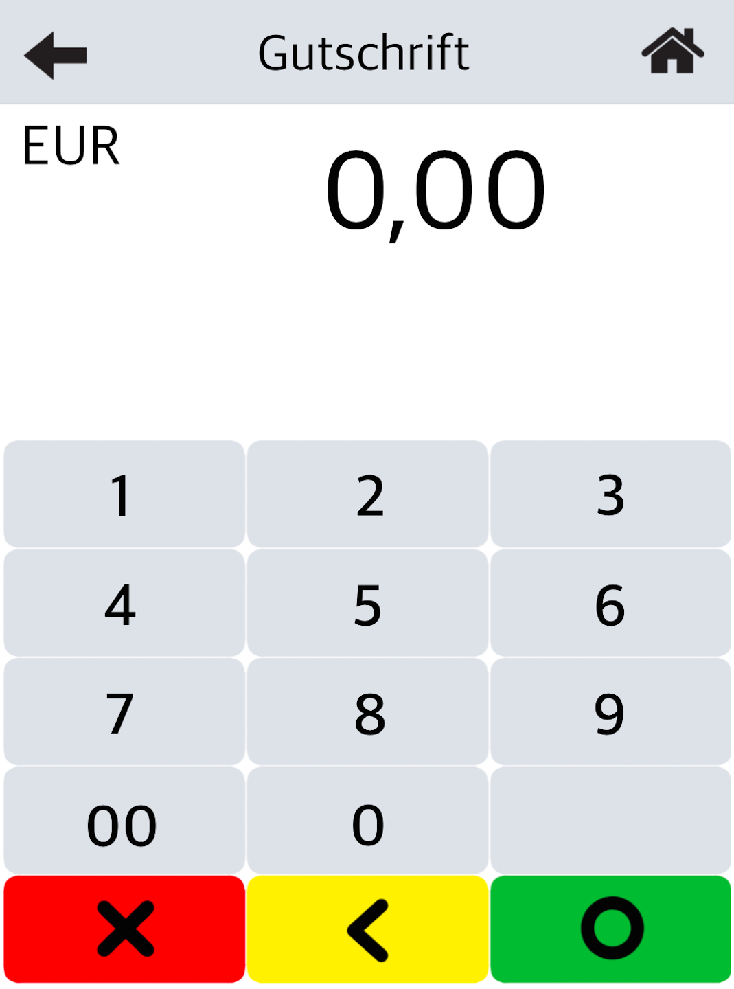 Please enter the amount to be credited and confirm the entry with the green OK button.