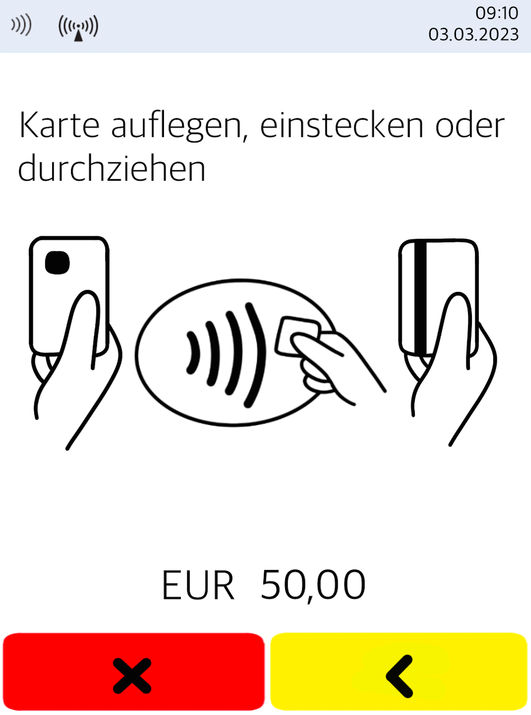 Please enter the 6-digit merchant password and confirm it with the green OK button on the display.