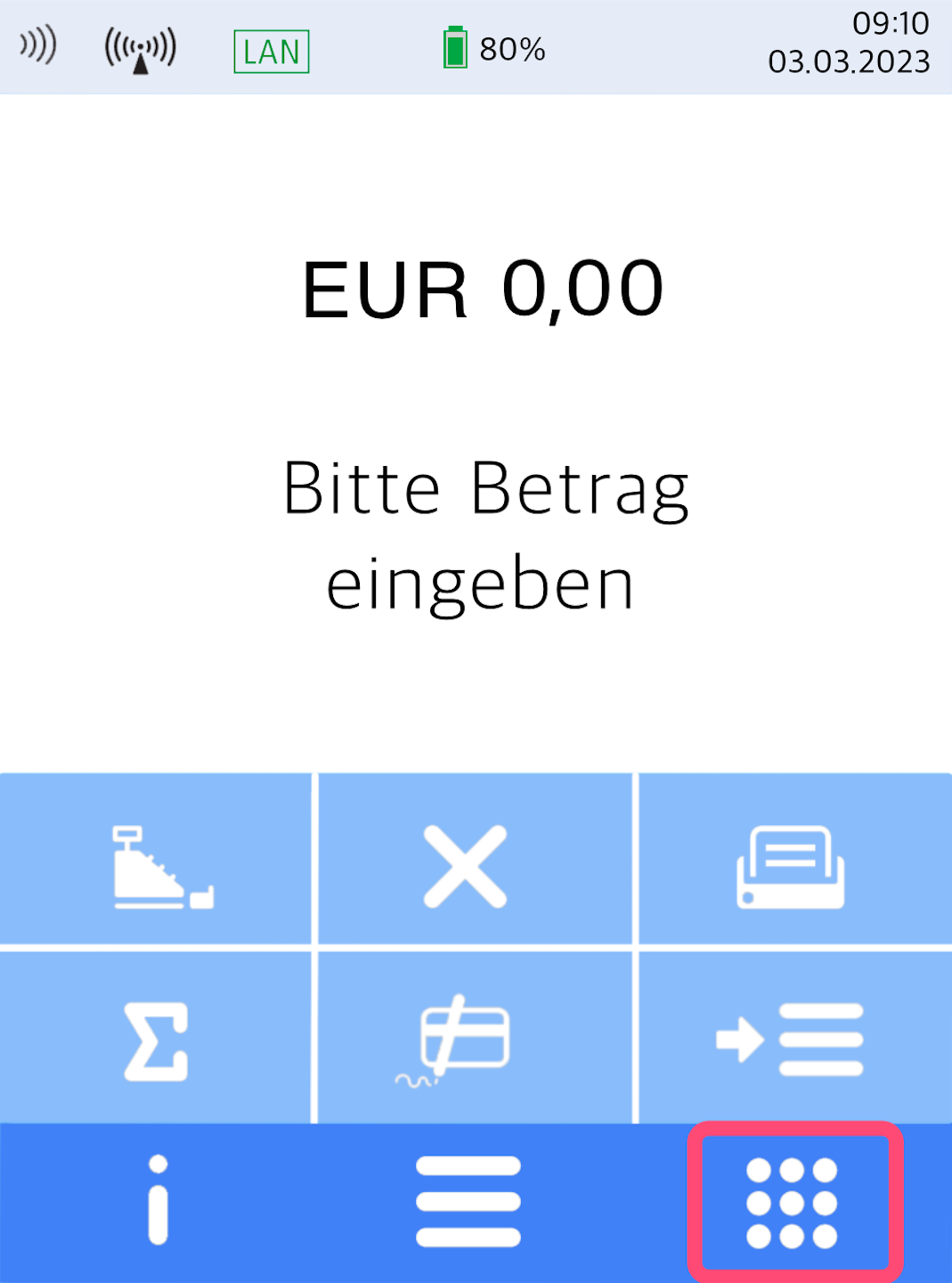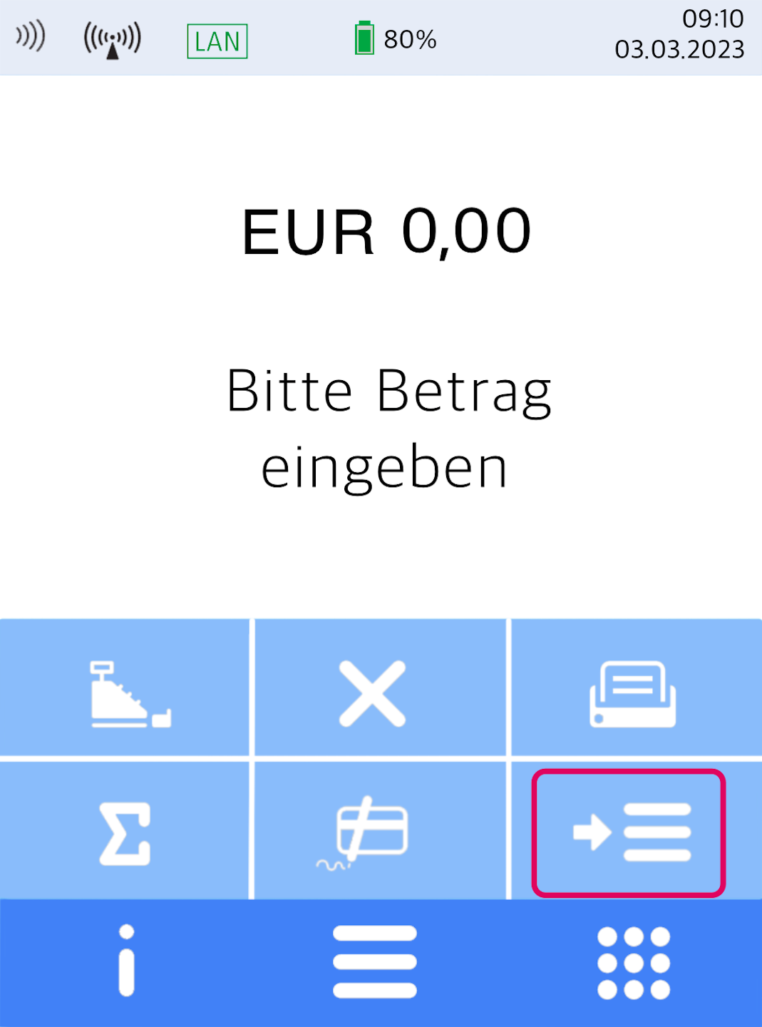 Please press the bottom right button with the 9 dots for Transactions (Fig. 1).