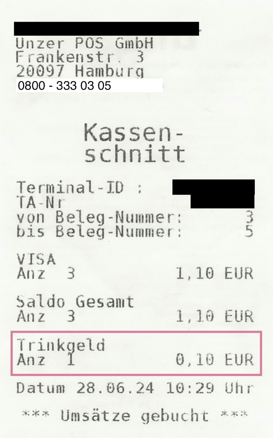 ¹ Tip amounts are shown on the cash register closing starting from software version 09 and currently only for terminal IDs starting with 61xxxxxx.