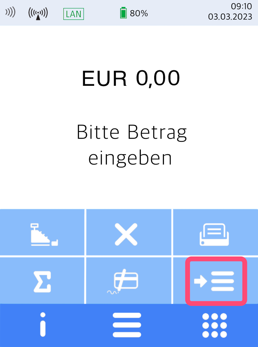 Please enter your 6-digit merchant password and confirm it with the green OK button on the display.