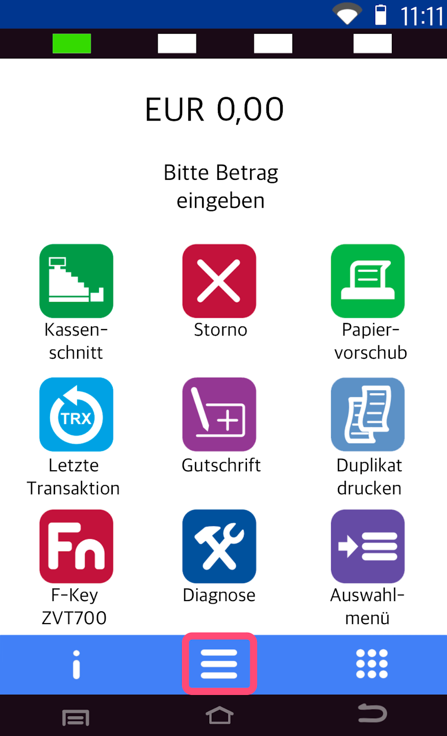 Please enter the 6-digit merchant password and confirm it with the green OK button on the display.
