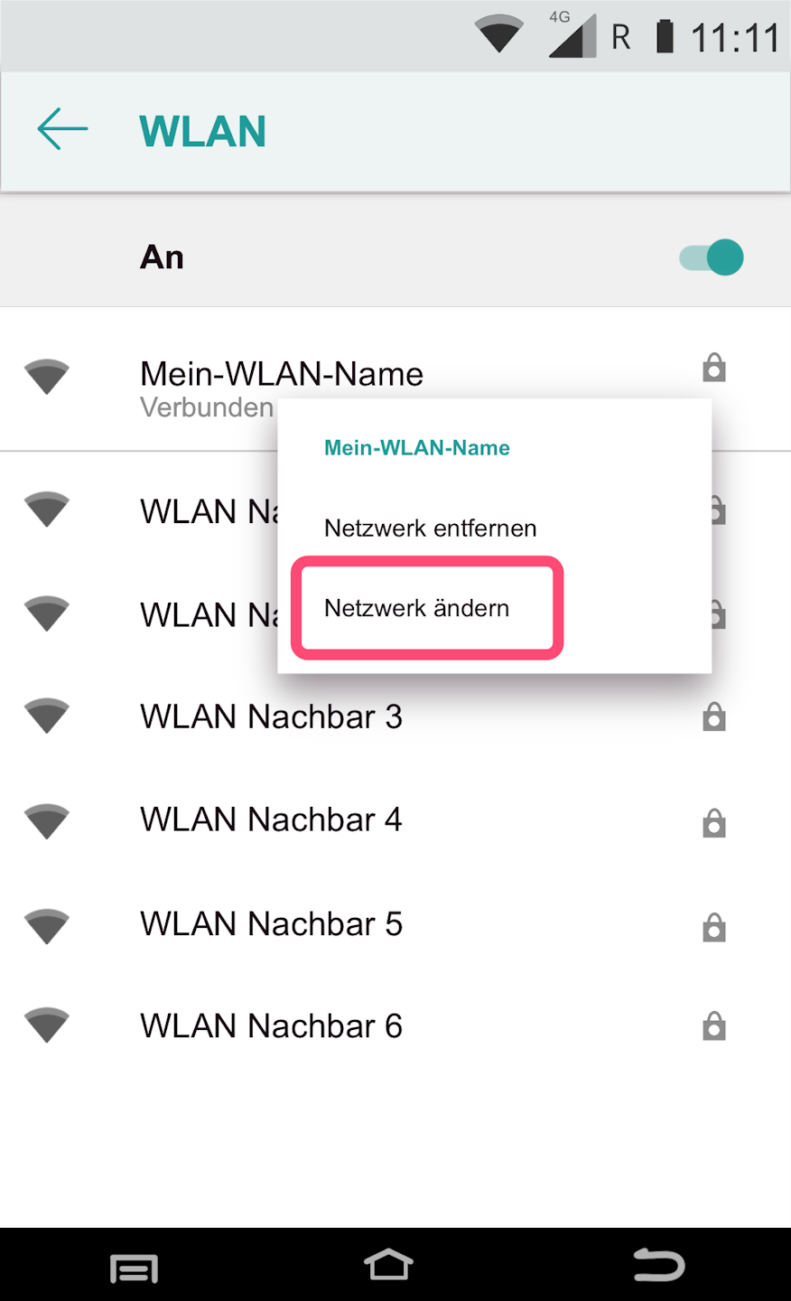 In the next step, press and hold your Wi-Fi network name to access the extended menu.