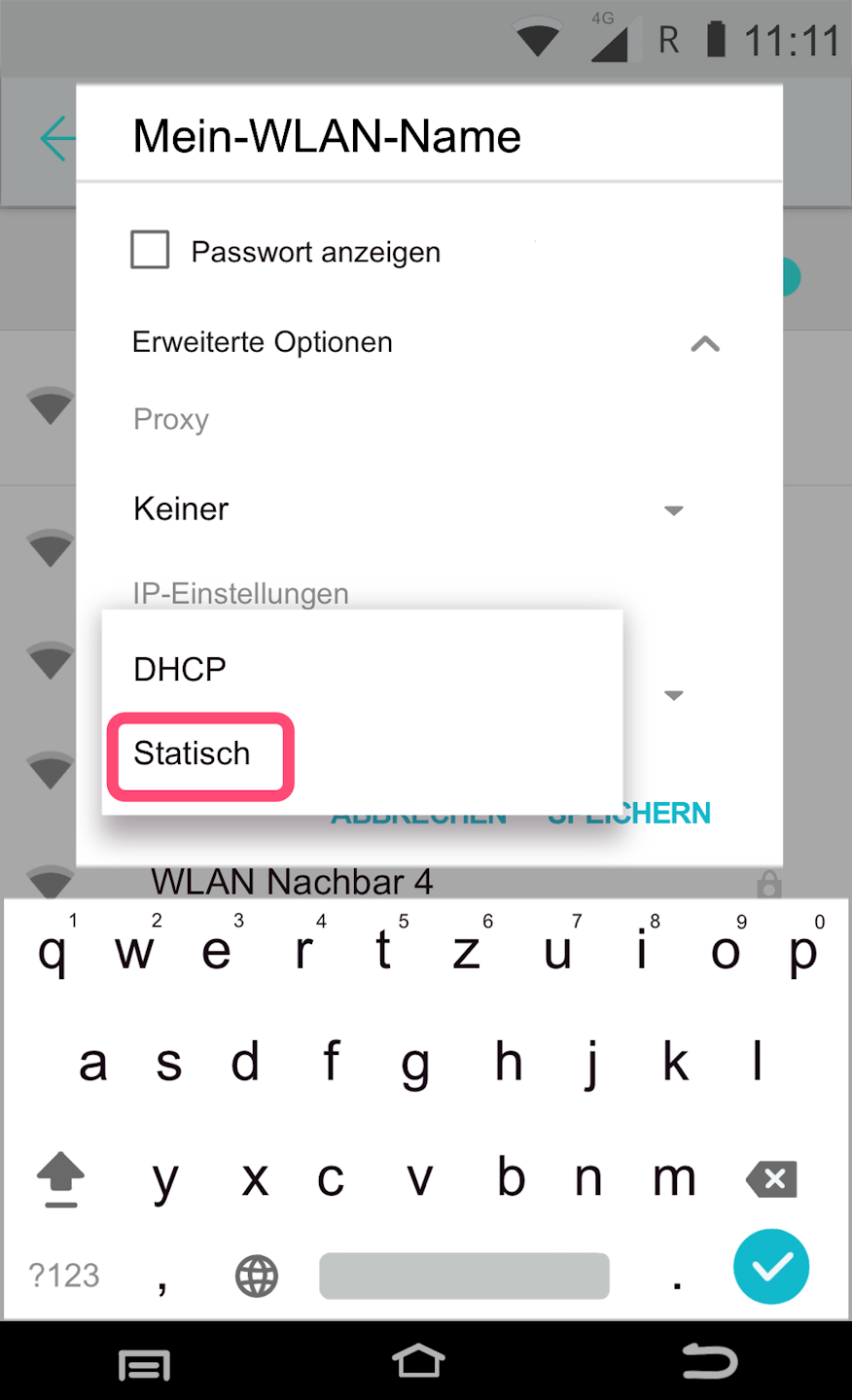 Fig. 3 - By tapping IP settings, you can now select Static.