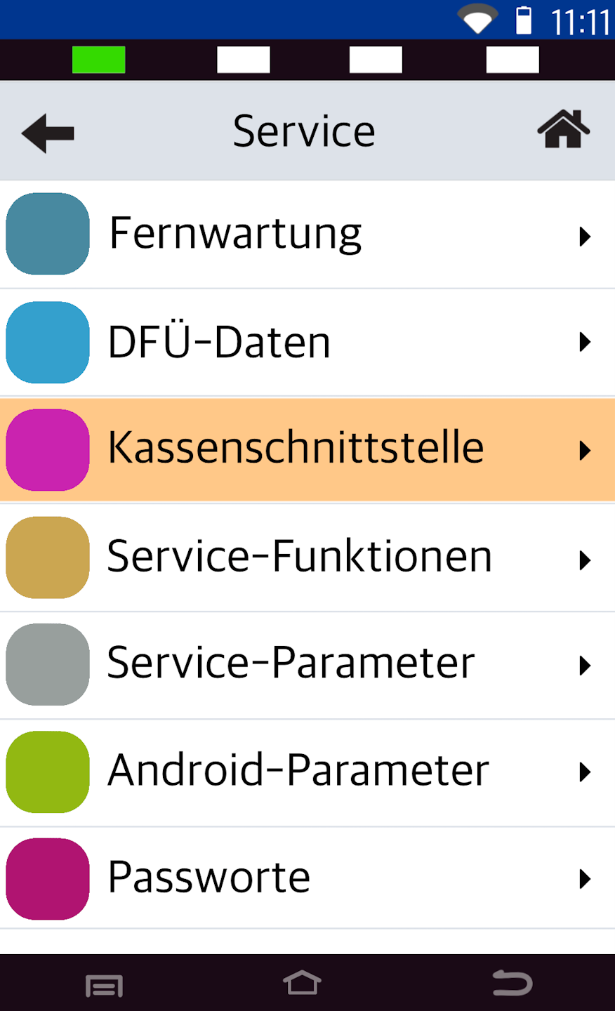 Please select the menu item Kassenschnittstelle.