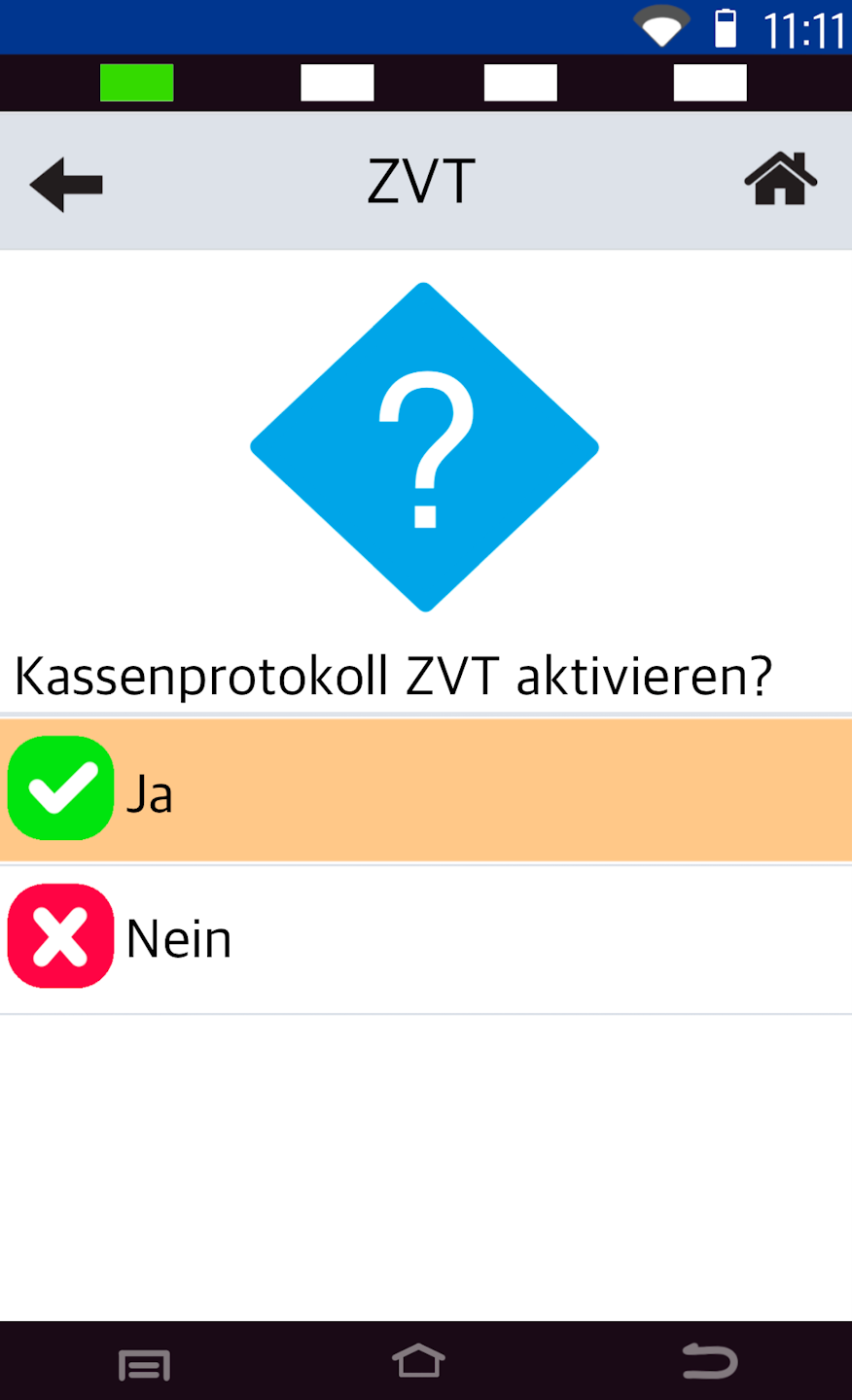 You will now be asked if you want to activate the ZVT POS protocol. Please confirm the question with YES.