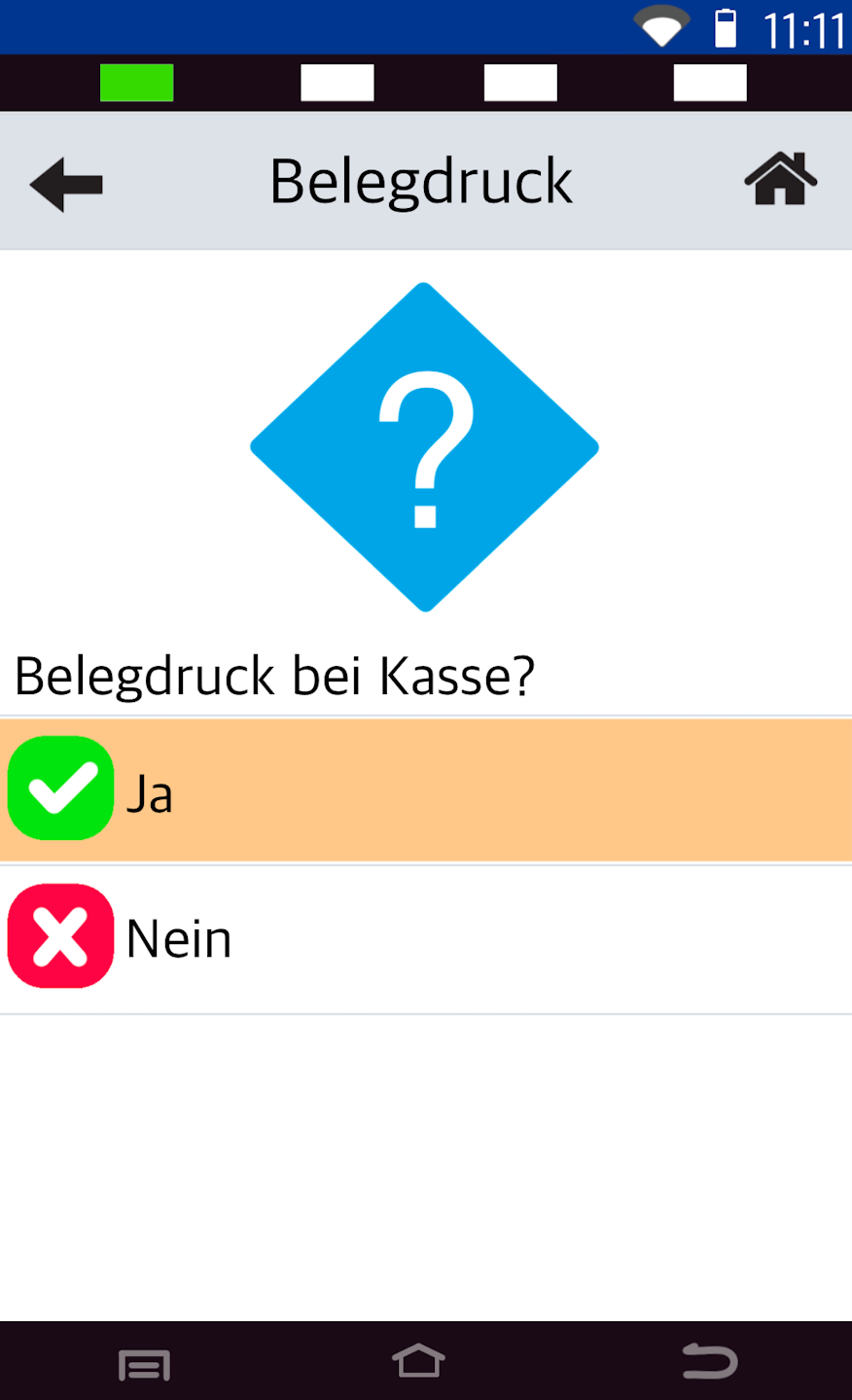 Should the receipt printing take place at the POS? Please make your selection.