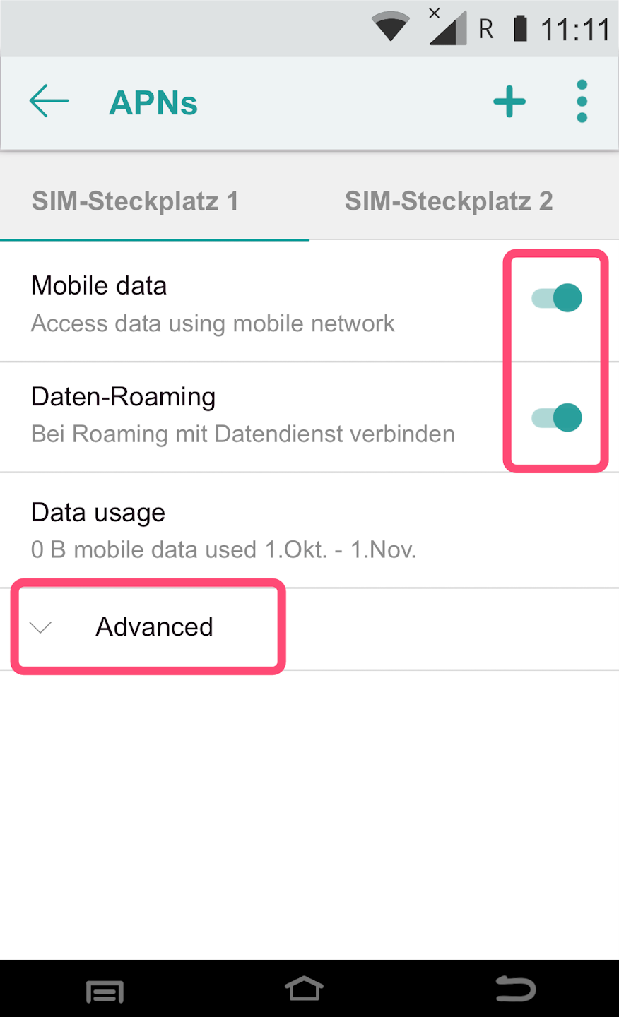 Mobile Data – activate