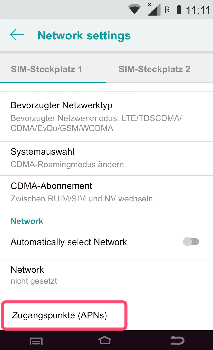 Please tap on the menu item Mobile Network as shown in Fig. 1.