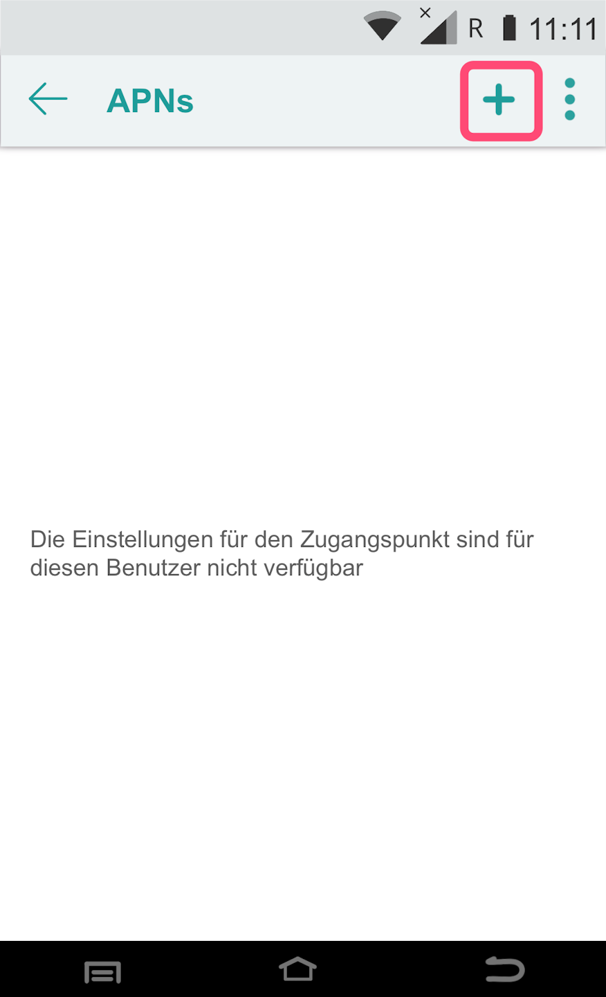 Fig. 1 - Please use the plus symbol in the upper right corner to add the correct APNs.