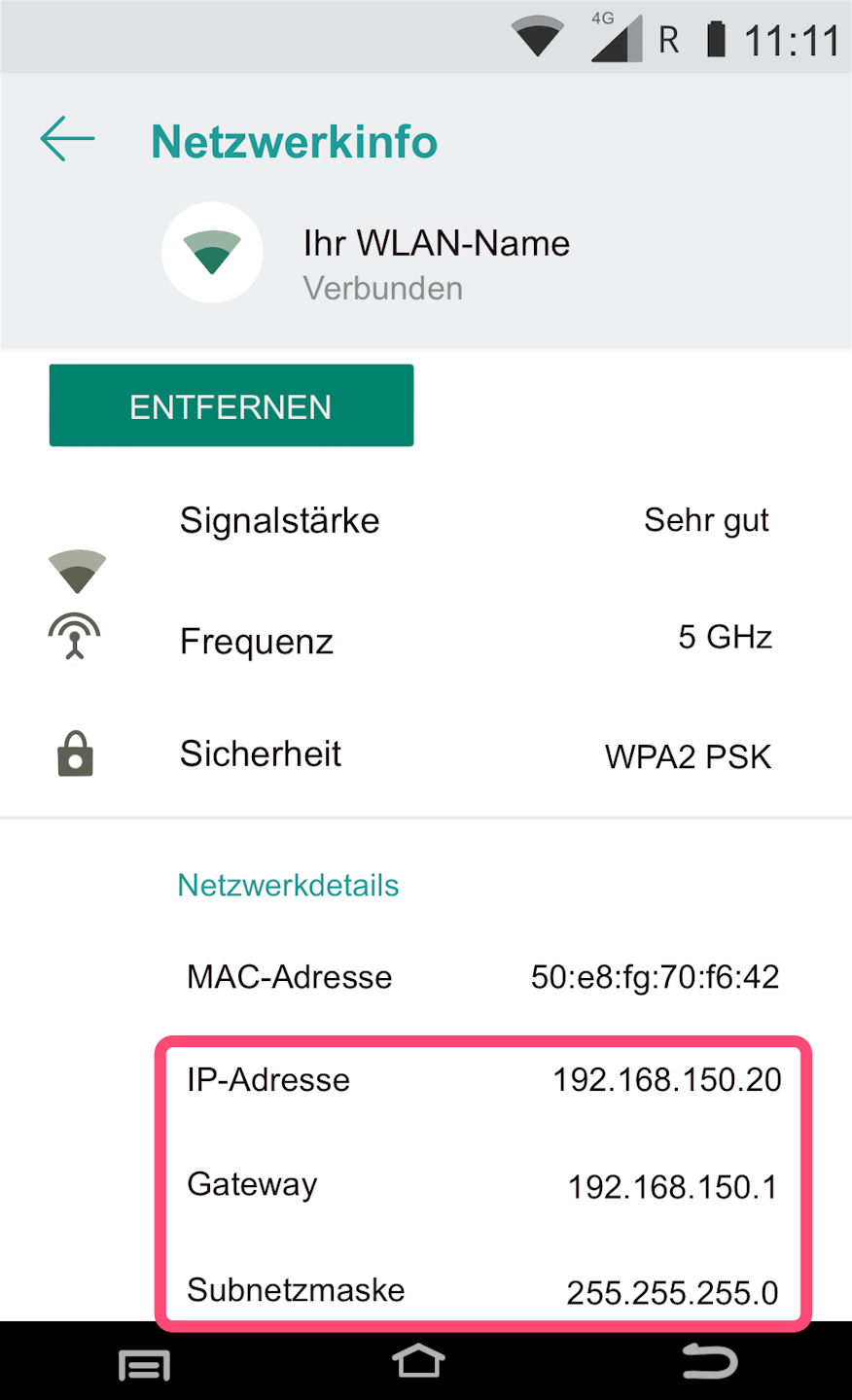 You will now be shown all information about your Wi-Fi network and the IP address.
