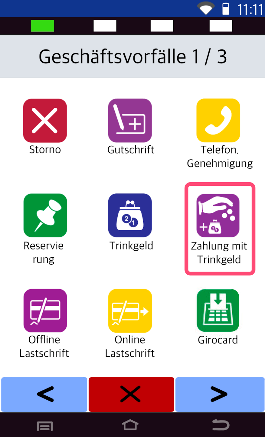 Please select the soft key Zahlung mit Trinkgeld.